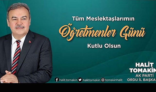 Başkan Tomakin, Meslektaşı olmaktan büyük onur duyduğum eli öpülesi, baş tacı , saygıdeğer öğretmenlerimiz 24 Kasım öğretmenler gününüzü kutlar, başta görevleri başında şehit olan öğretmenlerimiz olmak üzere, ahirete intikal eden öğretmenlerimize ALLAH cc.’dan rahmet dilerken , hayatını devam ettiren öğretmenlerimize sağlık, sıhhat ve afiyetler diliyorum dedi.