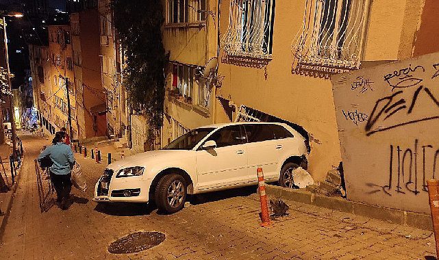 İstanbul'un Beşiktaş ilçesindeki yokuşta facianın eşiğinden dönüldü. Araçların sık sık kaza yaptıkları yokuş bitiminde, bir otomobil eve daldı.