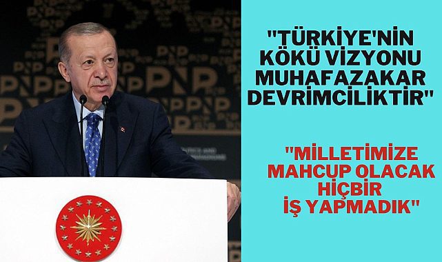Türk siyasetinde açtığımız temiz sayfayı hizmetlerle, yatırımlarla, reformlarla doldurduk vurgusu yaparrak 20 yıllık iktidar sürecini anlatan Cumhurbaşkanı Erdoğan, "Muhafazakar devrimci derken bir paradoksu değil kökü mazide olan atiyi ifade ediyoruz." ifadelerini kullandı