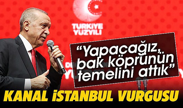 Cumhurbaşkanı Erdoğan, "Muhalefet Kanal İstanbul'a karşı çıkıyor. Şimdiye kadar her atılan adıma karşı çıkıyorlar, dikili taşınız yok. Yapacağız, bak köprünün temelini attık Kanal İstanbul'da. Şu anda o yürüyor.