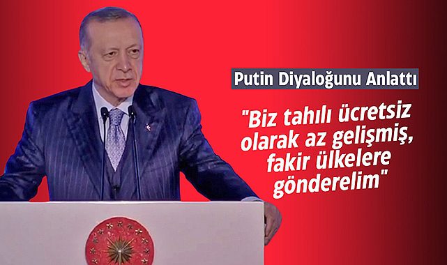 MÜSİAD EXPO'da açıklamlaarda bulunan Başkan Erdoğan "Sayın Putin, 'Biz tahılı ücretsiz olarak az gelişmiş, fakir ülkelere gönderelim' dedi. Bu konuda anlaştık, mutabık kaldık." dedi.