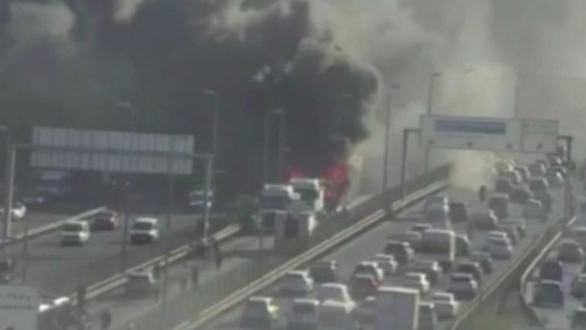 İstanbul’un Bakırköy ilçesinde, 7 Temmuz akşamı İncirli Metrobüs Durağı yakınında seyir halindeki bir metrobüste çıkan yangın büyük paniğe yol açtı. Henüz belirlenemeyen bir nedenle başlayan yangın, aracı kısa sürede alevler içinde bıraktı. Yolcular, sürücünün hızlı müdahalesiyle tahliye edilerek olası bir faciadan kurtuldu. Olay yerine sevk edilen itfaiye ekipleri yangını kontrol altına alırken, yoğun duman nedeniyle D-100 karayolunda trafik aksamaları yaşandı. Yangının çıkış nedeni için incelemeler devam ediyor.