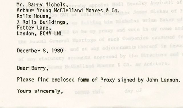 Lennon mektubunda, 9 gün sonra Londra’da yapılacak olan Beatles şirketi için yıllık toplantıda oy kullanmayı seçtiği 3 vekilin isimlerini listeledi. Efsane müzisyen, bu mektubu yazdıktan saatler sonra, eşi Yoko Ono ile birlikte kayıt stüdyosundan dönerken, New York’taki dairesinin önünde Mark David Chapman adlı kişi tarafından silahla vurularak öldürüldü. David Chapman, ömür boyu hapis cezasına çarpıtıldı.