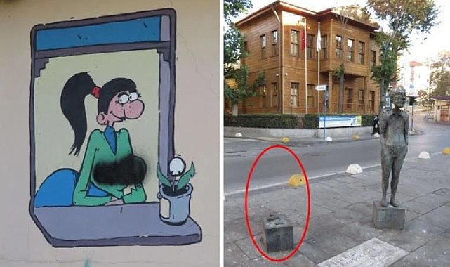 Kadıköy Belediyesi Karikatür Evi önünde bulunan Karikatürist Oğuz Aral'ın eserlerinden Avni karakterinin heykeli yere düşürüldü, duvardaki Sıdıka karakterinin resmi ise sprey boya ile karalandı.