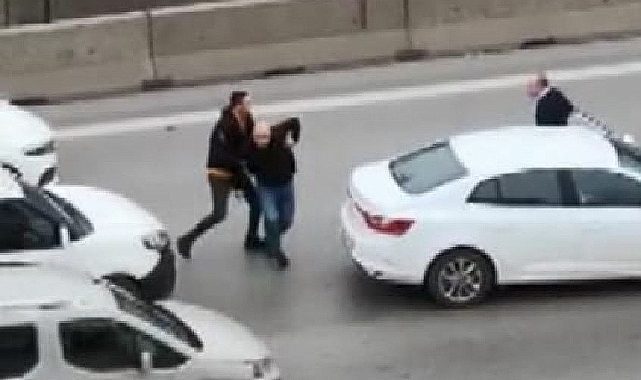 Trafikteki diğer araçlara aldırış etmeden yolun ortasında duran öfkeli sürücülerin arasında tansiyon yükseldi. Aracından inen şahıs, tartıştığı kişiyi de zorla aracından indirmeye çalıştı. Darp dakikalarca sürdü.
