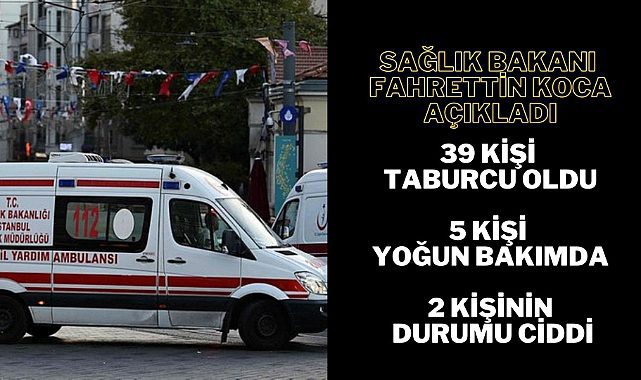 "İstiklal Caddesi'ndeki patlamada yaralanan 81 kişiden 39'u tedavileri tamamlanarak taburcu oldu. Yatırılarak tedavi edilen 42 hastadan 5'i halen yoğun bakımda, 2'sinin durumu ciddiyet gösteriyor. Yaralıların sağlıklarına bir an önce kavuşmaları için elimizden geleni yapıyoruz"