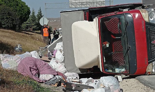 Kazanın etkisiyle devrilen kamyonette bulunan ev eşyaları kullanılamaz hale geldi. İhbar üzerine olay yerine polis ve itfaiye ekipleri sevk edildi.