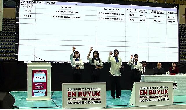Toplu Konut İdaresi Başkanlığı (TOKİ) 81 ilde sürdürdüğü sosyal konut kampanyasında nefesler tutuldu, kura çekimi işlemleri hızla devam ediyor. Bu kapsamda bugün Van iline bağlı TOKİ kura çekilişi işlemi heyecanla gerçekleştirildi. On binler, Van'da TOKİ kura sonuçlarını merakla, heyecanla bekliyor.