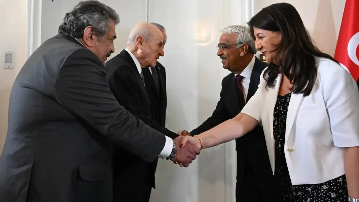 16 Temmuz Çarşamba günü TBMM’de gerçekleşen görüşmede, MHP Lideri Devlet Bahçeli, DEM Parti heyetiyle makamında buluştu. Heyette TBMM Başkanvekili ve DEM Parti Van Milletvekili Pervin Buldan, DEM Parti Şanlıurfa Milletvekili Mithat Sancar ve avukat Faik Özgür Erol yer aldı. Bahçeli, heyeti kapıda karşılayarak sıcak bir karşılama sergiledi. Görüşme basına kapalı gerçekleşti ve yaklaşık süreye dair resmi bir bilgi paylaşılmadı. Bu ziyaret, “Terörsüz Türkiye” hedefi doğrultusunda süren diplomatik temasların önemli bir adımı olarak değerlendiriliyor.